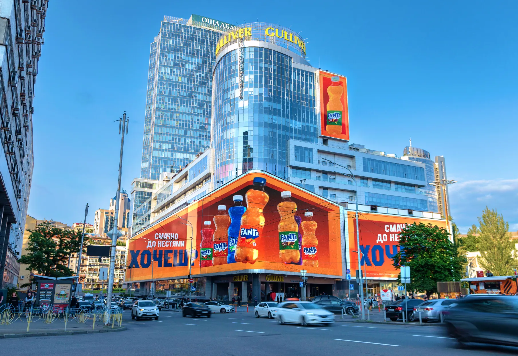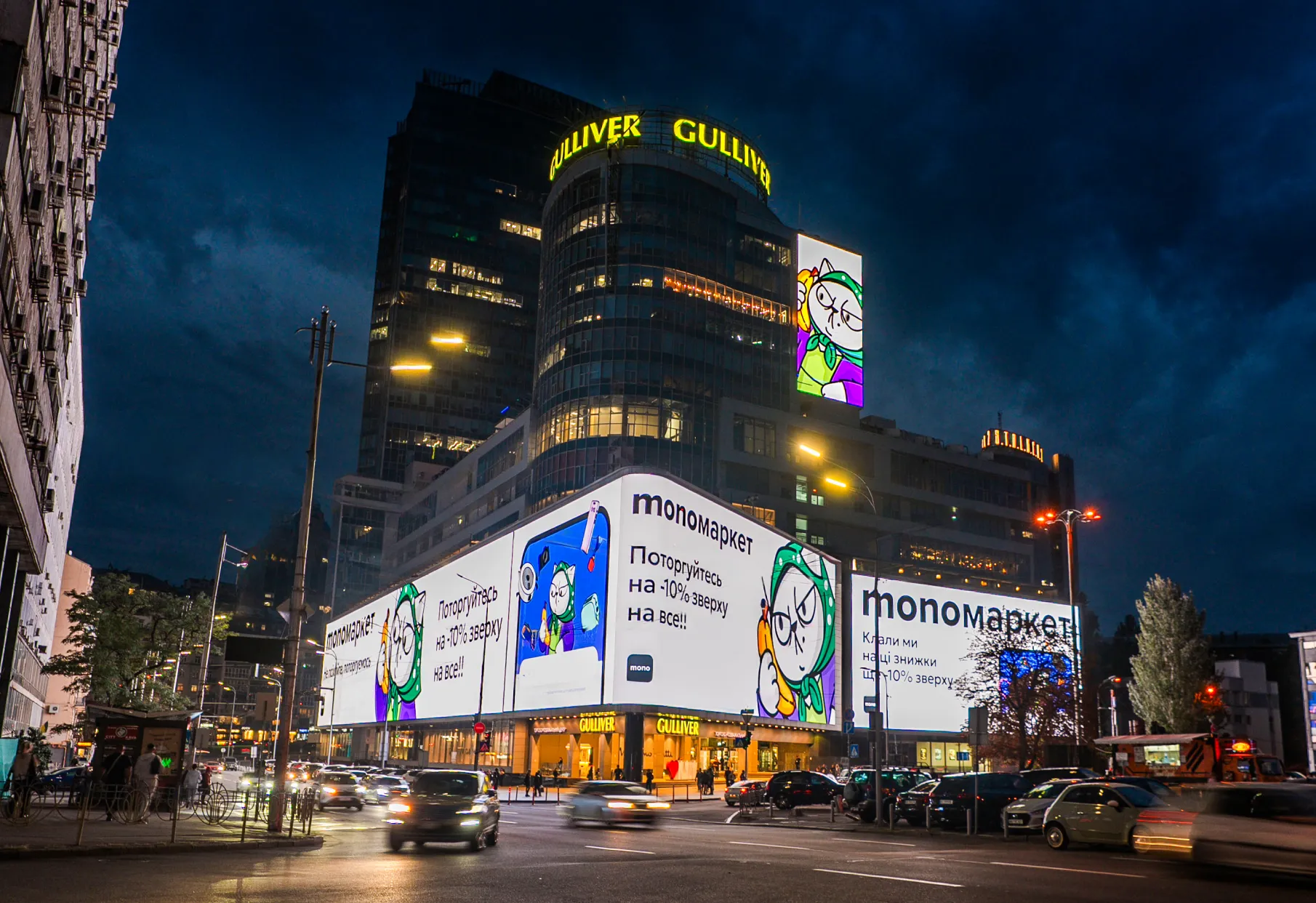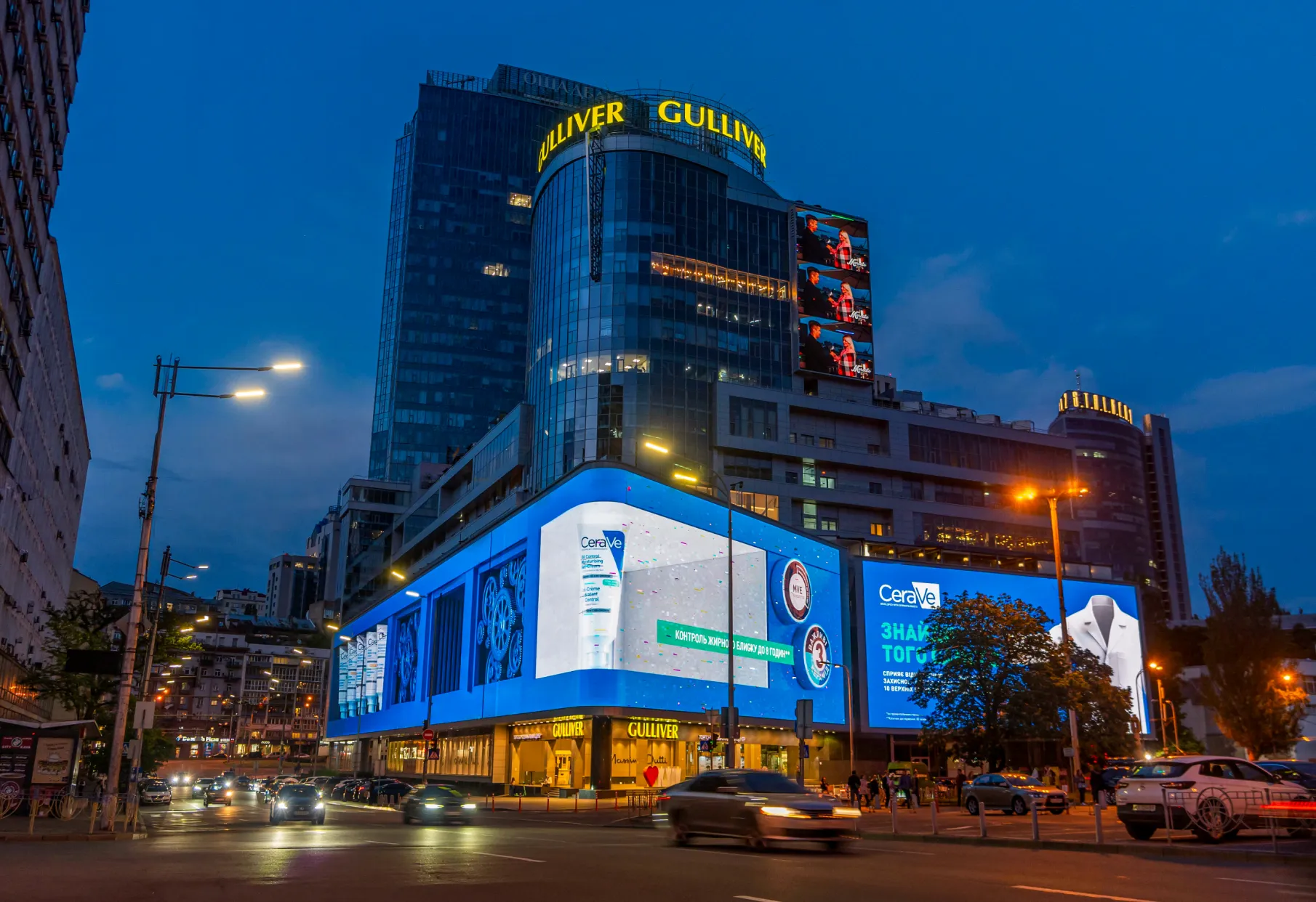 Найбільший медіафасад у Європі та флагманська DOOH-локація столиці. Носій епічного масштабу, що перетворює «розміщення» на подію. Екран охоплює простір навколо торговельно-офісного комплексу Gulliver. Його бачать водії та пасажири, пішоходи, відвідувачі самого комплексу й навколишніх закладів, мешканці прилеглих будинків і працівники бізнес-центрів. Унікальний формат дає бренду візуальну перевагу над іншою рекламою поблизу. Реклама на Gulliver працює на імідж і забезпечує максимальну помітність. Локацію обирають для запусків, прем’єр і кампаній, яким потрібна гучна публічна поява та ефект великої сцени.