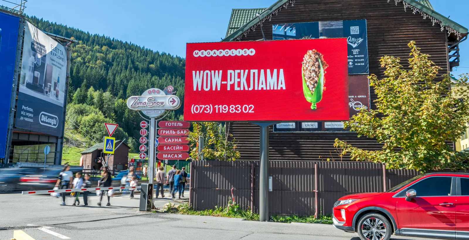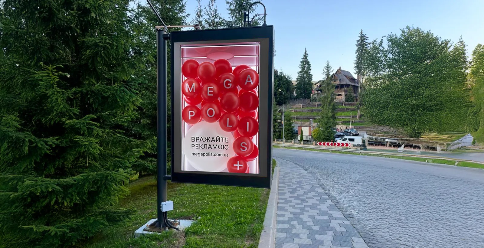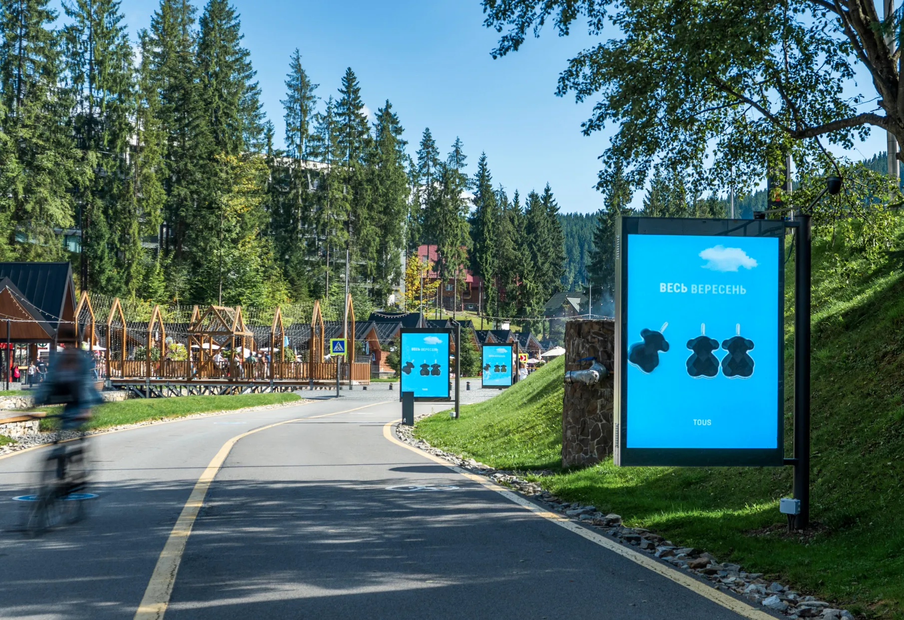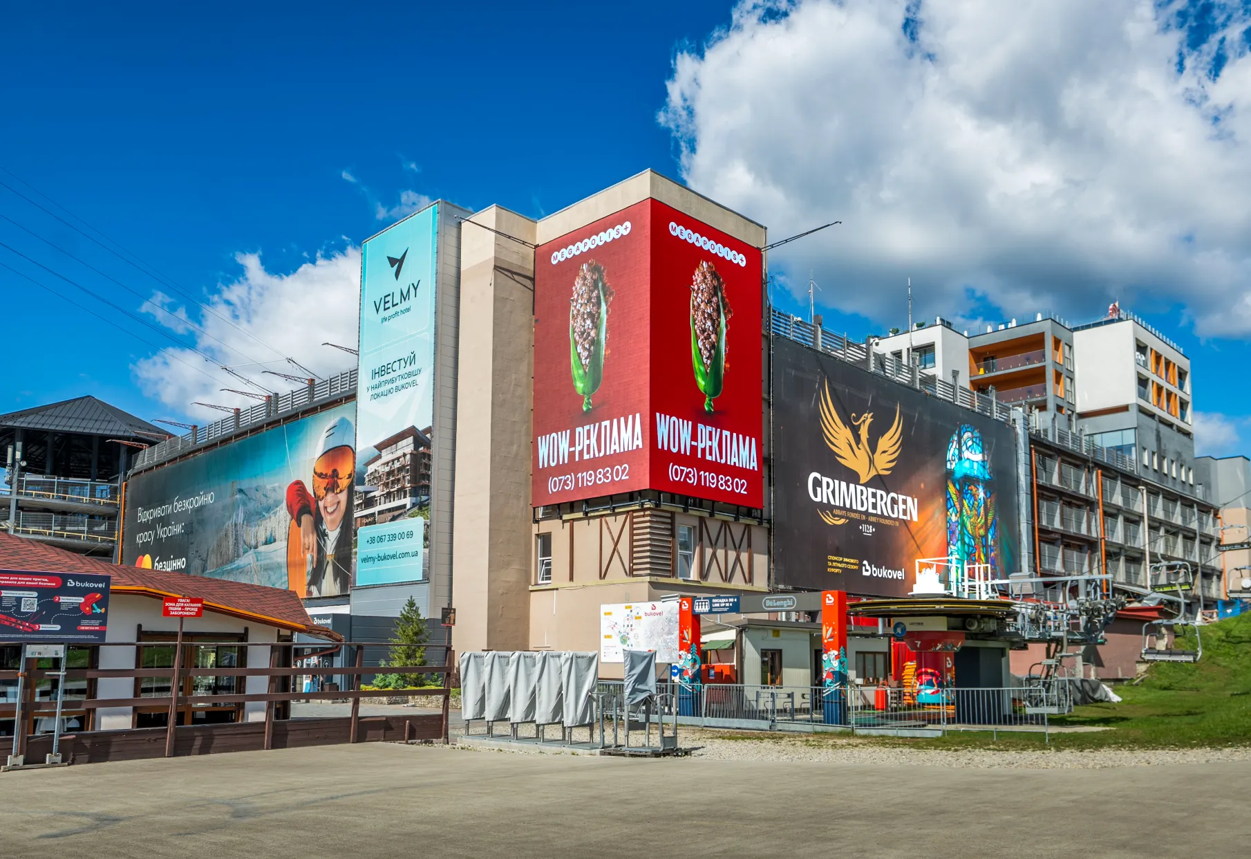 Буковель — найбільший гірськолижний курорт Східної Європи та головне місце для відпочинку у будь-яку пору року. Щодня тут тисячі людей: на схилах, у чергах до витягів, у ресторанах, готелях і розважальних комплексах. І всюди можна розмістити рекламу. Фасади, сітілайти, брендовані витяги, турнікети, реклама на мостах — всі ці носії доступні для розміщення реклами. Окрім класичних форматів — ультрасучасний цифровий інвентар. У Буковелі вже працюють 20 двосторонніх сітілайтів (1,2×1,8 м) у найпрохідніших зонах курорту та медіафасад на стіні SPA-комплексу VODA club (8,64×8,64 м). Усі носії — нові, яскраві й встановлені у 2025 році. Ми не зупиняємось — поступово додаємо нові екрани, щоб охоплювати ще більше людей і робити твої кампанії ще помітнішими.