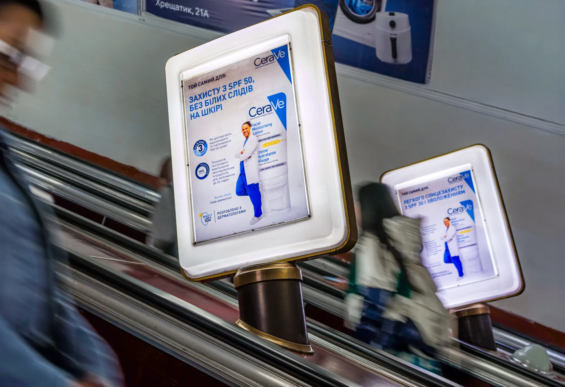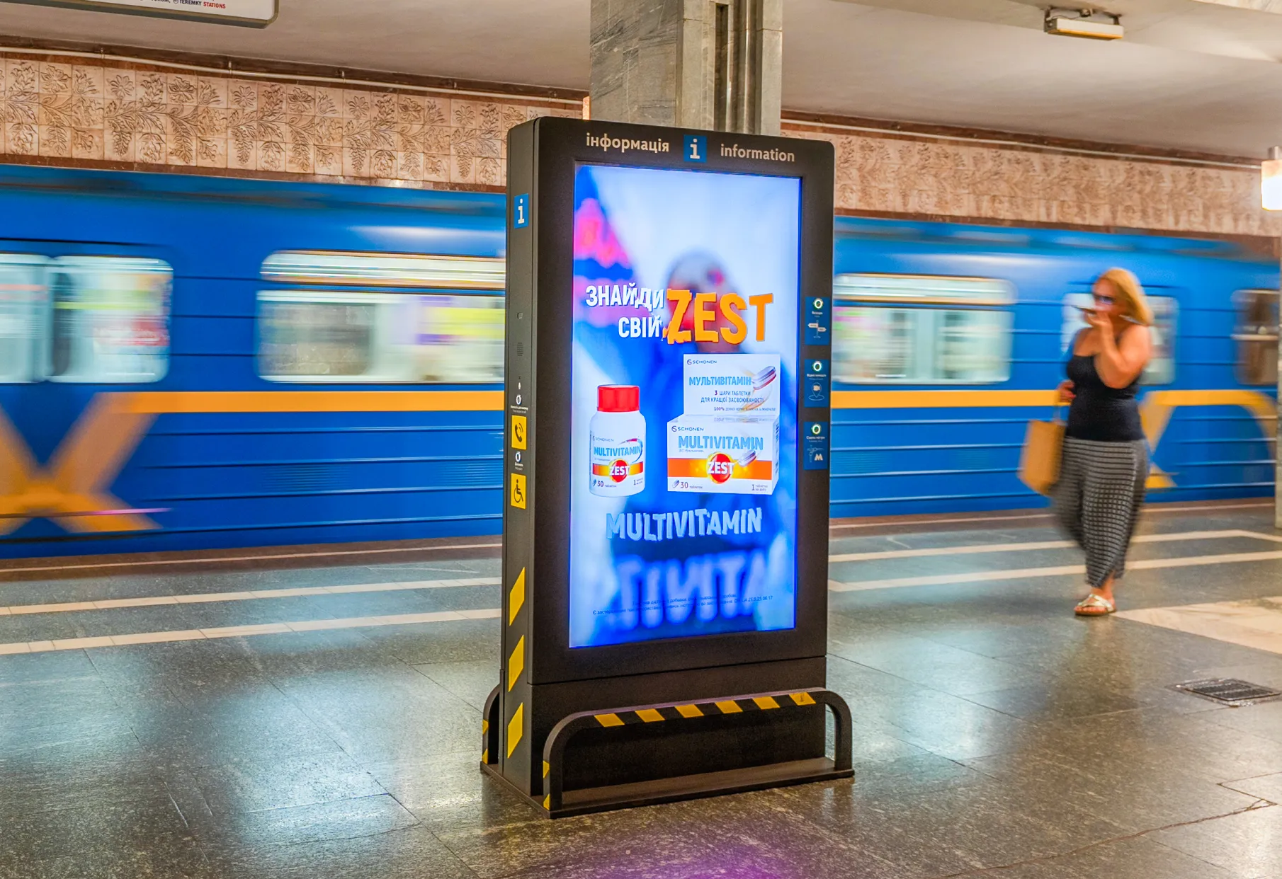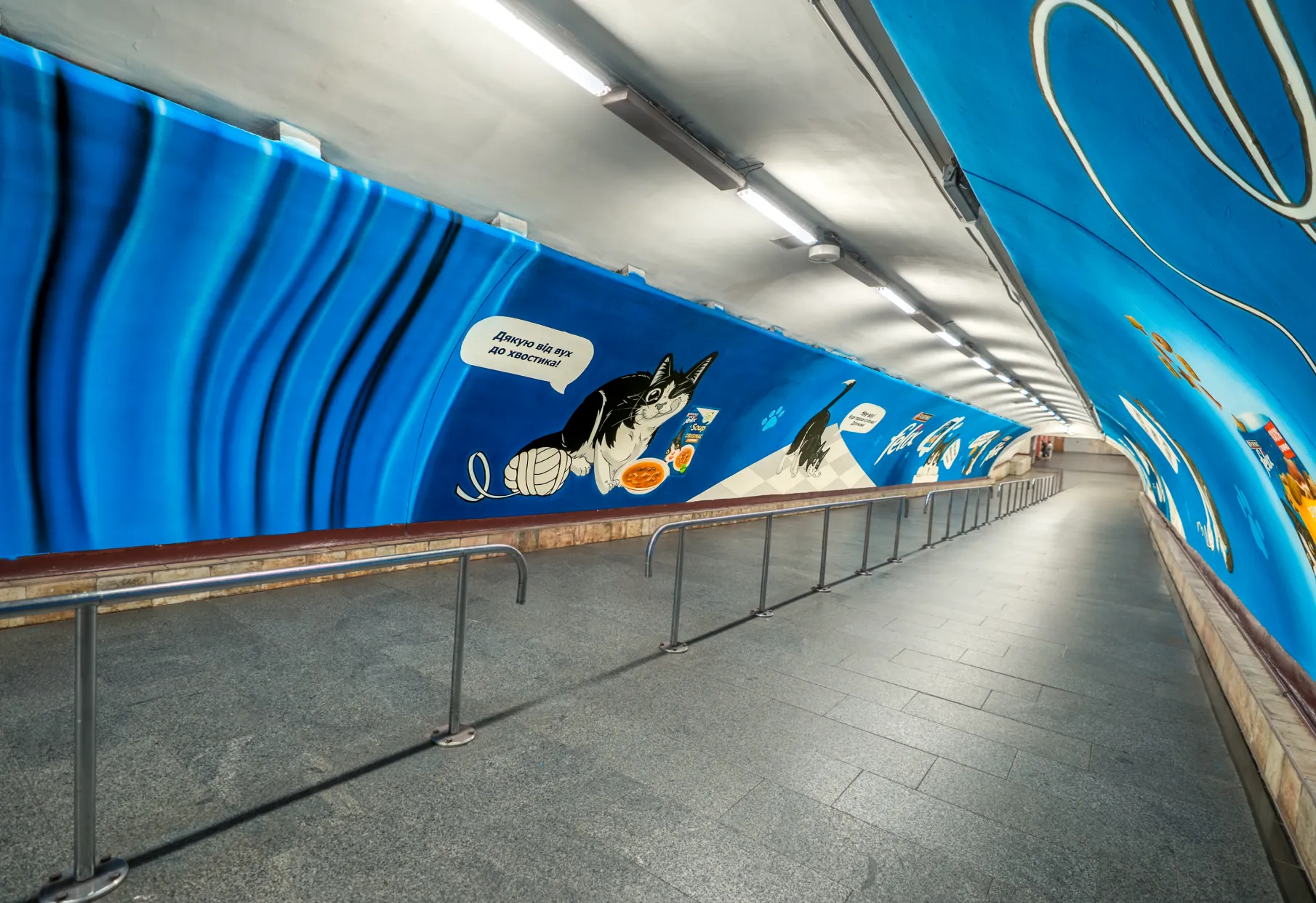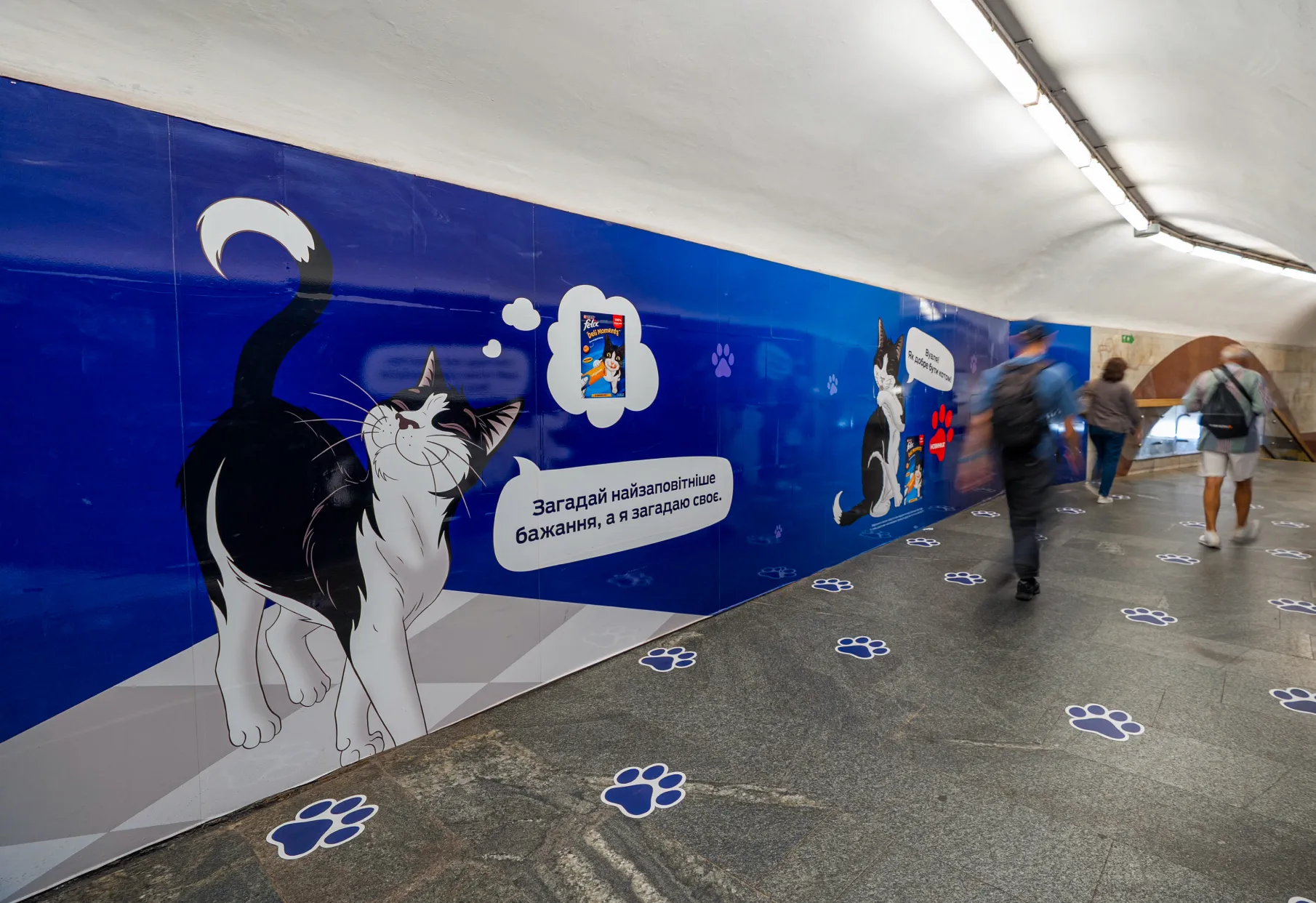• Постери на платформах і стінах, реклама на лайтбоксах у метро.