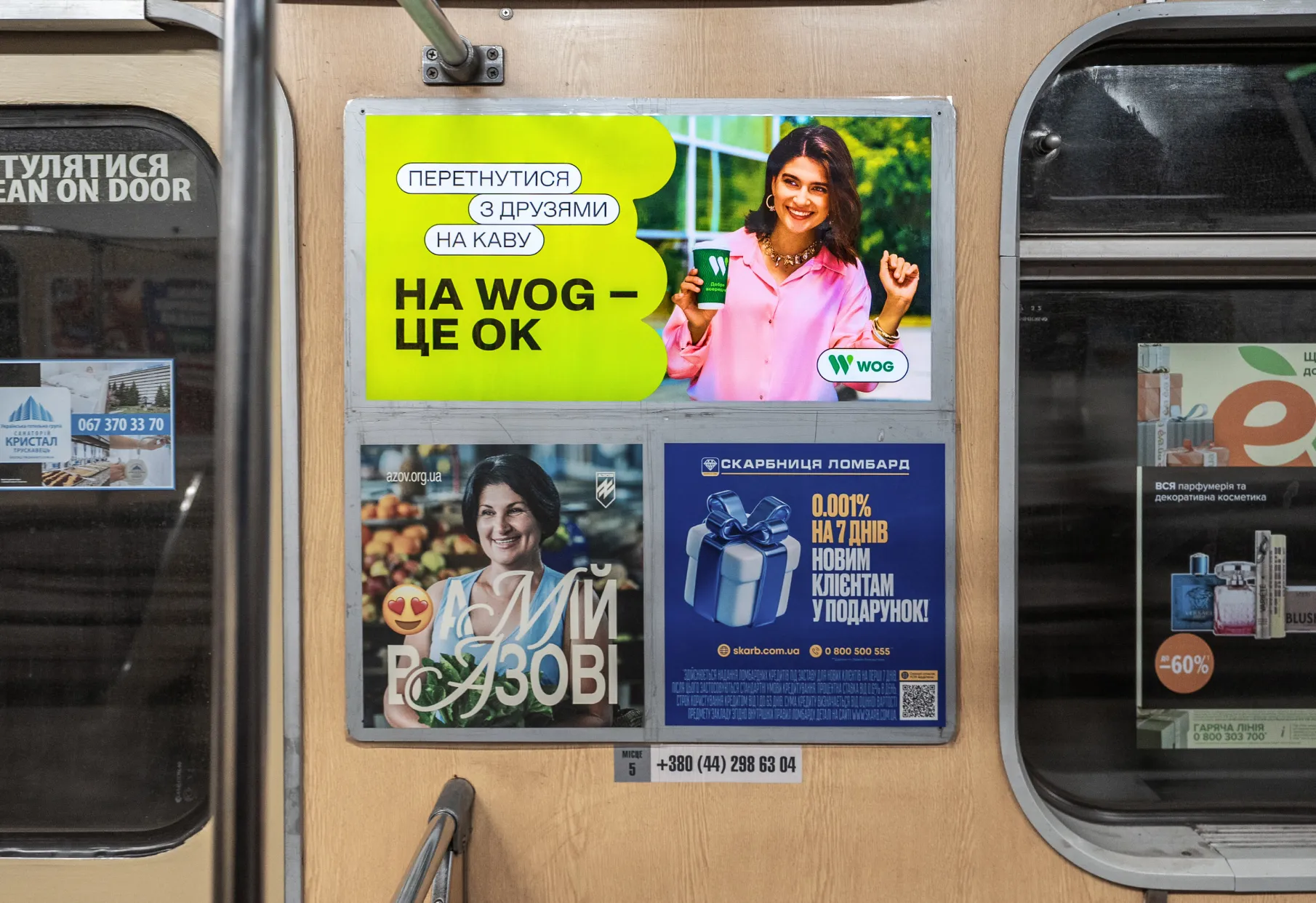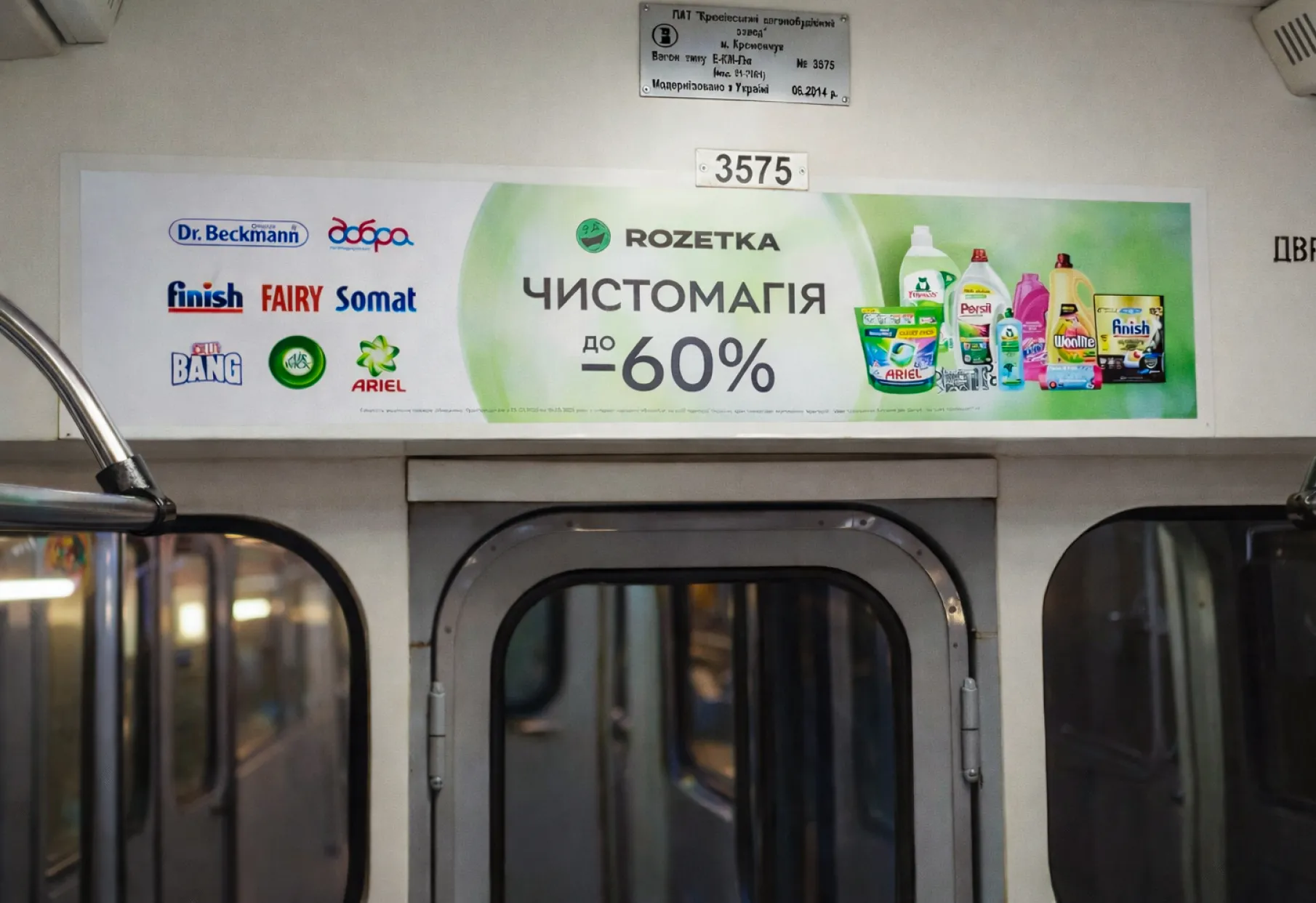 • Оголошення на дверях, стінах, вікнах вагонів.